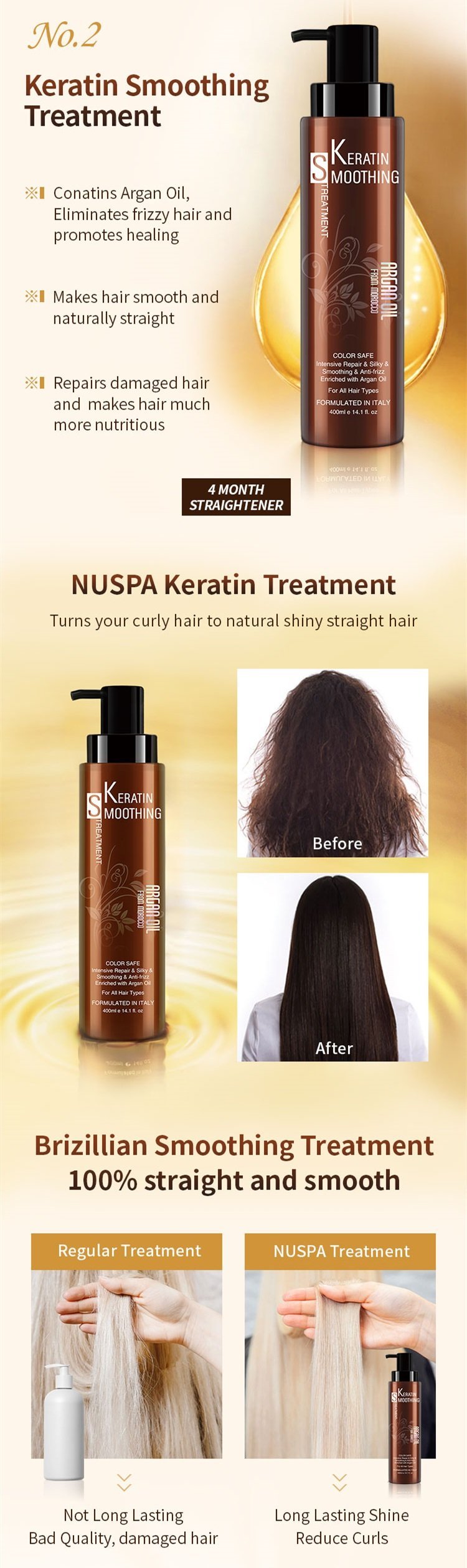 NUSPA Professional Natural Brazilian Hair Keratin Smoothing Straightening Treatment